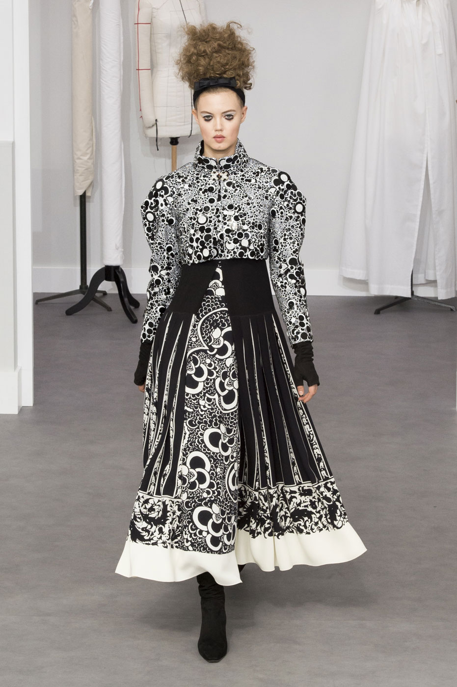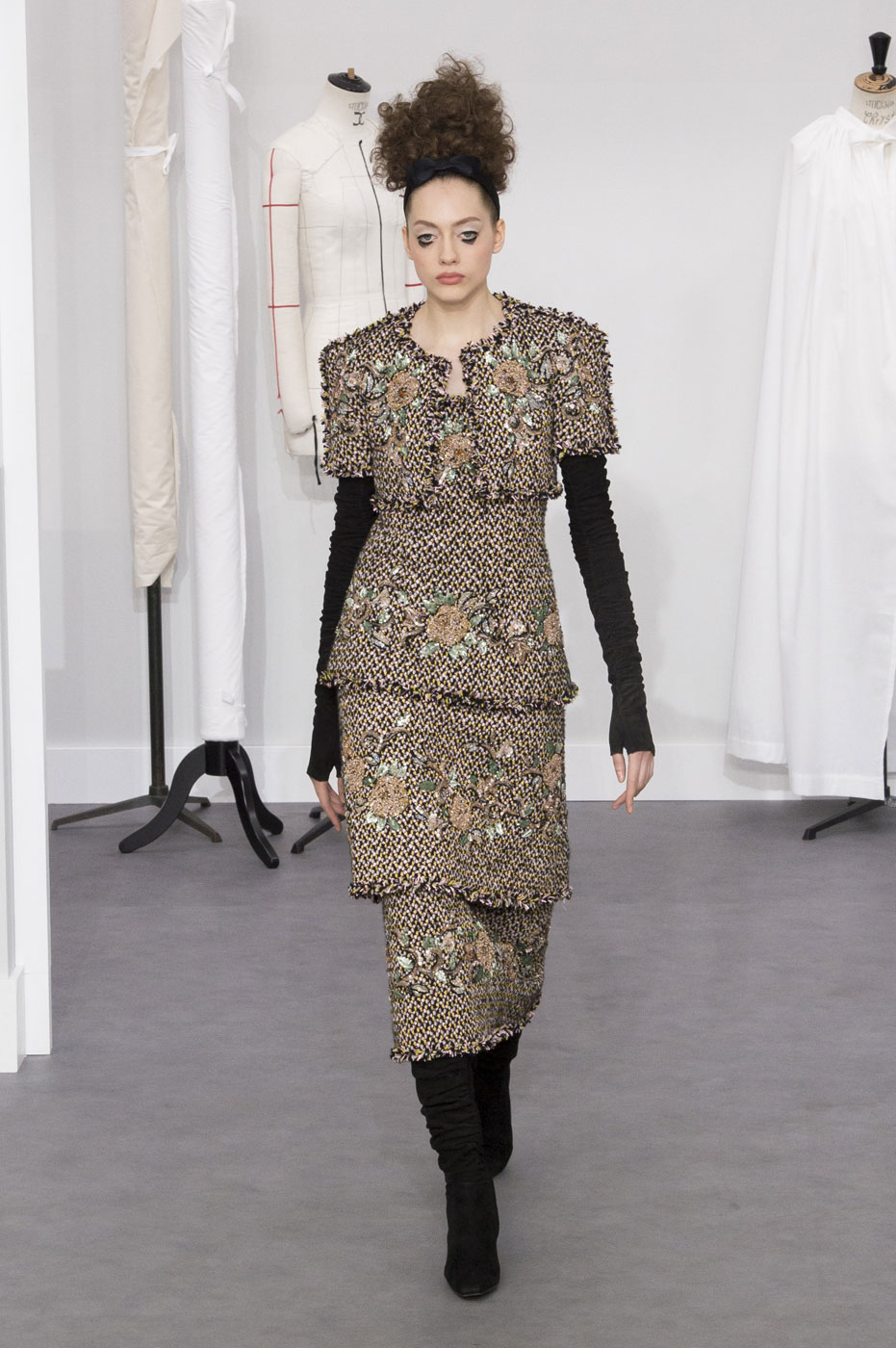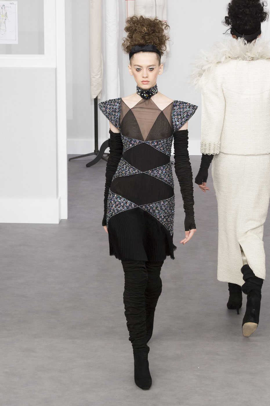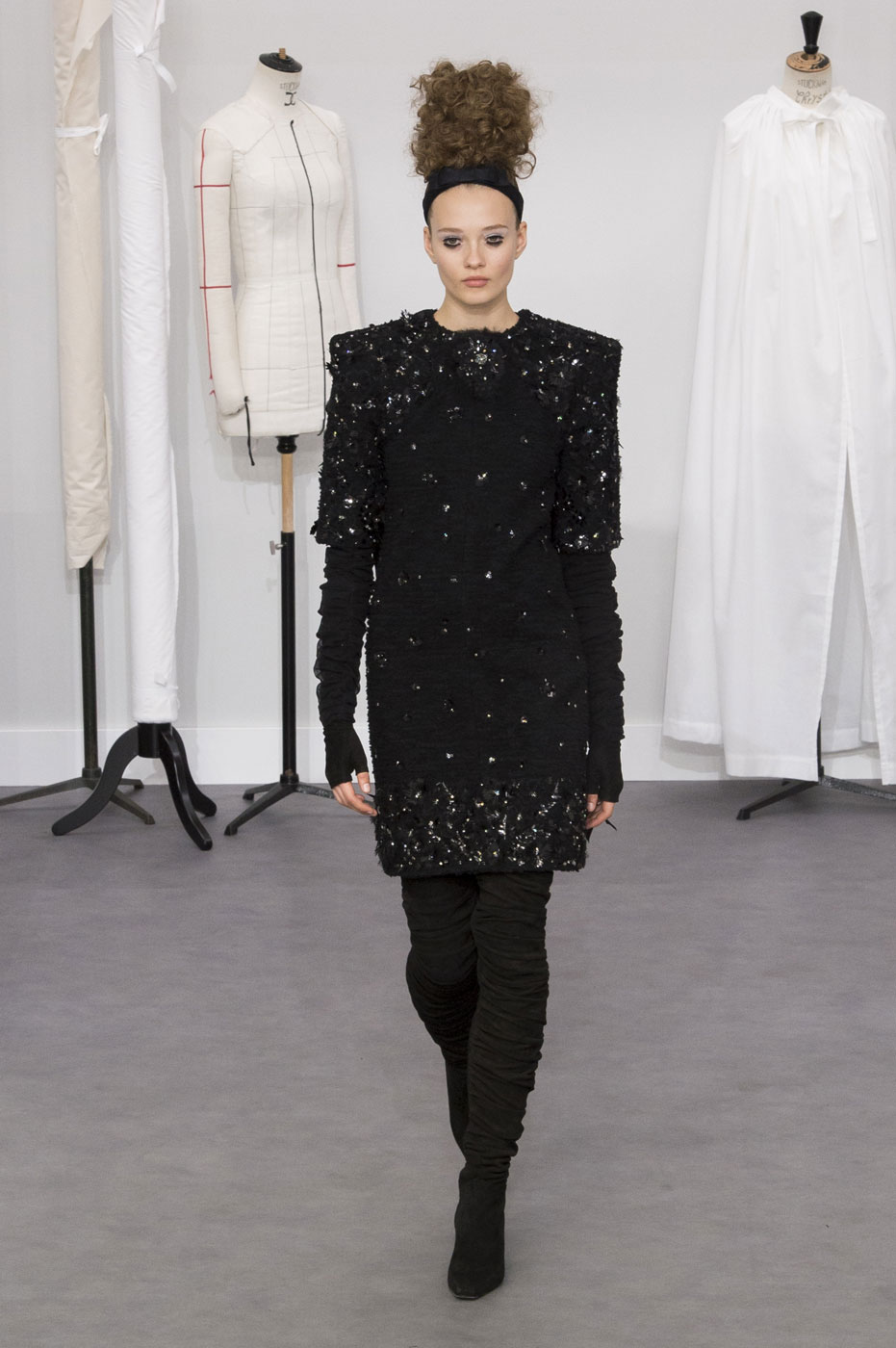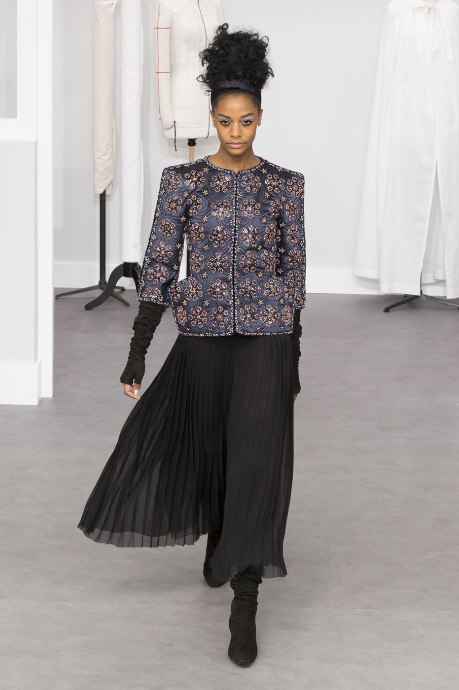 Heritage e sperimentazione. La collezione fall/winter 2016-17 di Chanel è un tuffo nell'archivio della maison che Karl Lagerfeld questa volta evita di dissacrare rispettandone i canoni classici, vivacizzati con decori a contrasto di grande eleganza. Capo cult resta il tailleur in tweed con giacche oltre i fianchi o appena a toccare la vita, mentre le gonne sono per lo più mini, anche balloon e in colori caldi come l'arancio. Come un funambolo, il designer si mantiene in equilibrio tra la sua innata voglia di sperimentare e la voglia di omaggiare la tradizione stilistica di Chanel con capi dalle lunghezze variabili, per lo più completi dall'allure ladylike. I cappottini hanno maniche egg shape o appena a palloncino, spesso corte o a tre quarti abbinate a maniche nere stile guanto con tutta le dita allo scoperto. Cuissard aderenti in camoscio fasciano la gamba mentre piume, ricami anche geometrici e glitter illuminano capi dal taglio rigoroso.