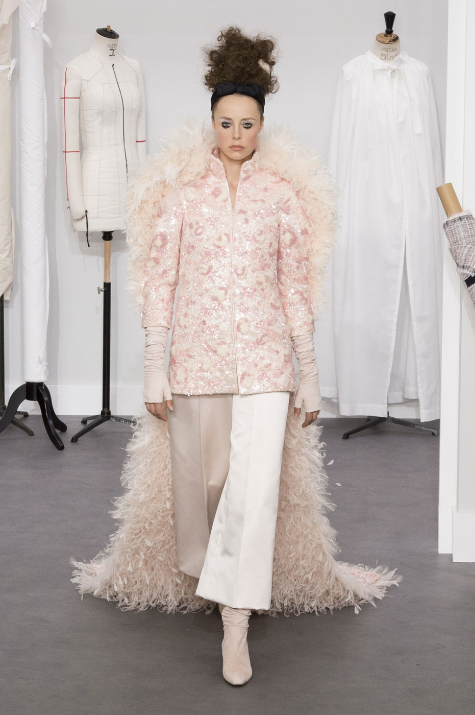 Heritage and experimentation. Karl Lagerfeld, in this fall/winter 2016-17 collection, avoids desecrating the fashion house's archive, respecting its classical stylistic canons, brightened with contrasting decorations of great elegance. Capo cult is the tweed suit with jackets over o touching lightly the hips, combined often with mini skirt or orange ballon skirt, very young and refined. Like an expert tightrope walker, the designer keeps in balance between his innate desire to experiment and the will to honor the stylistic tradition of Chanel with garments with variable lengths, always ladylike, Mini coats with short sleeves or three-quarter sleeves over another kind of sleeves, total black, tight like gloves. Suede cuissard and plumes, geometric embroideries and touch of glitter enhanced rigorous items.